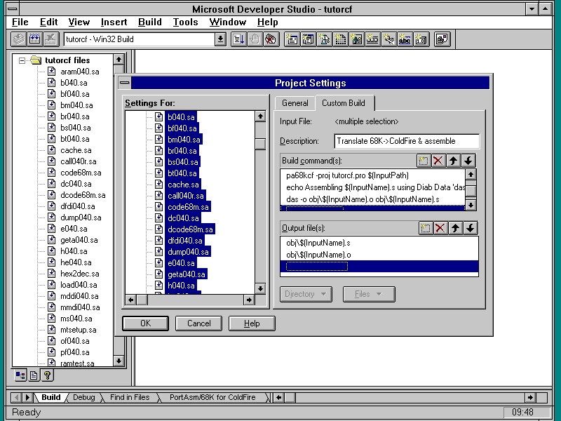 To use PortAsm in this environment, you need to download the Windows version of PortAsm. This needs to be placed in a directory where it is in the execution path. You then run Developer Studio, and set up a new project (it's best to specify a Console Application type) in which you place your original 68K source files. You will need to specify a 'Custom Build Step' to cause Developer Studio to call PortAsm (and possibly the assembler) to handle the files.